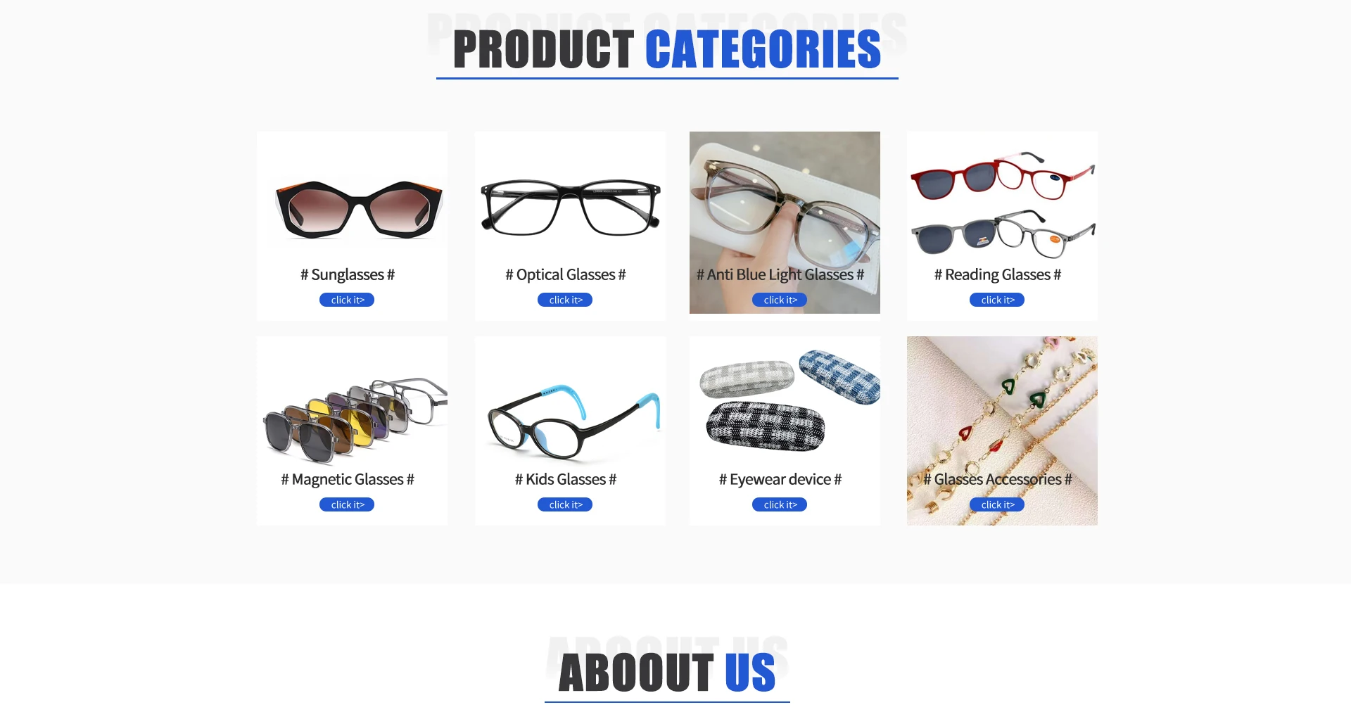 Productos principales:Gafas de sol, lentes de gafas, gafas ópticas, estuches para gafas, equipo para gafas
